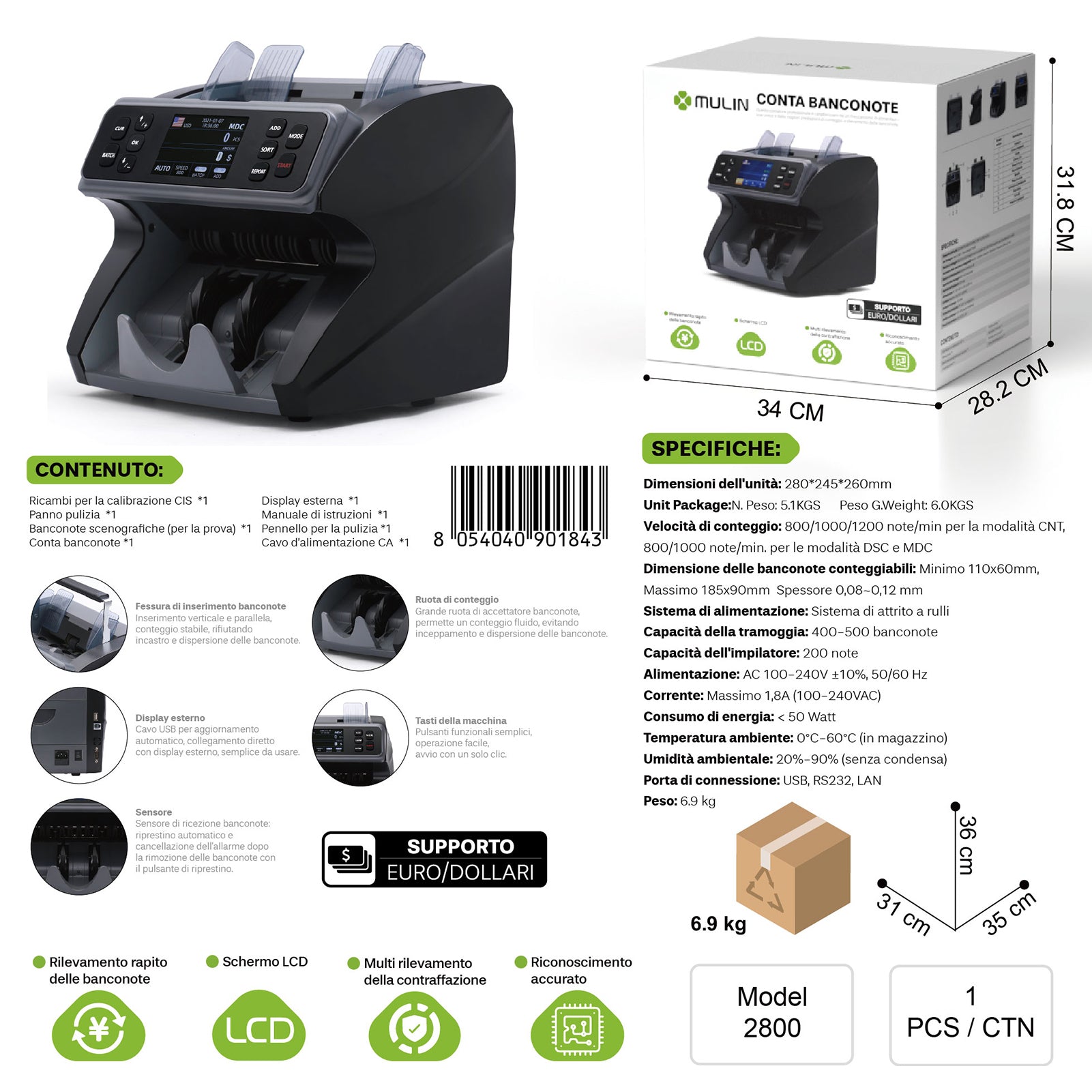 2800 Conta Banconote Supporto Euro/Dollari