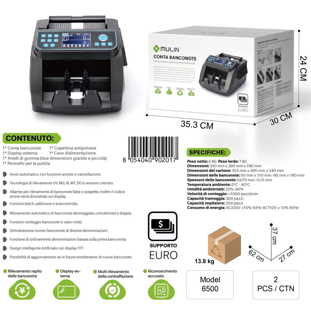 6500 Conta Banconote con Diplay Esterna (Supporto EURO)