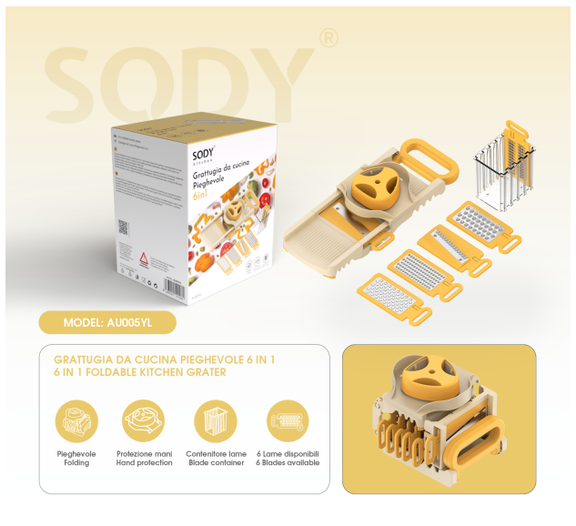 AU005YL Grattugia da cucina pieghevole 6 in 1
