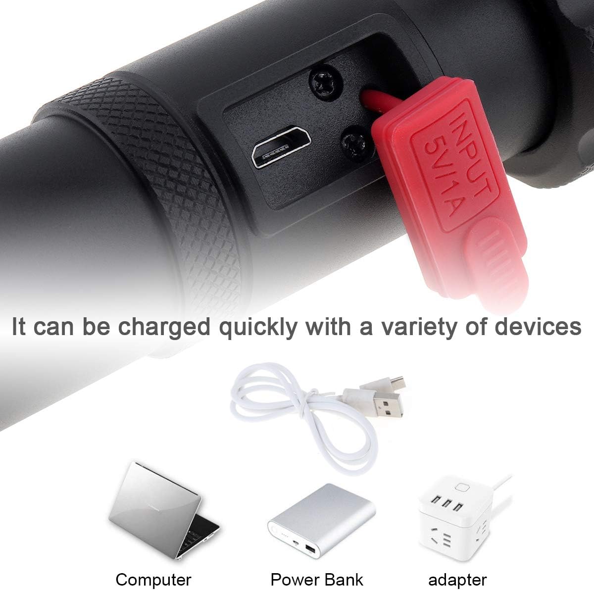 Alimentata da Batterie 18650: La torcia è alimentata da batterie 18650 integrate (incluse), che offrono una luminosità superiore rispetto alla media.