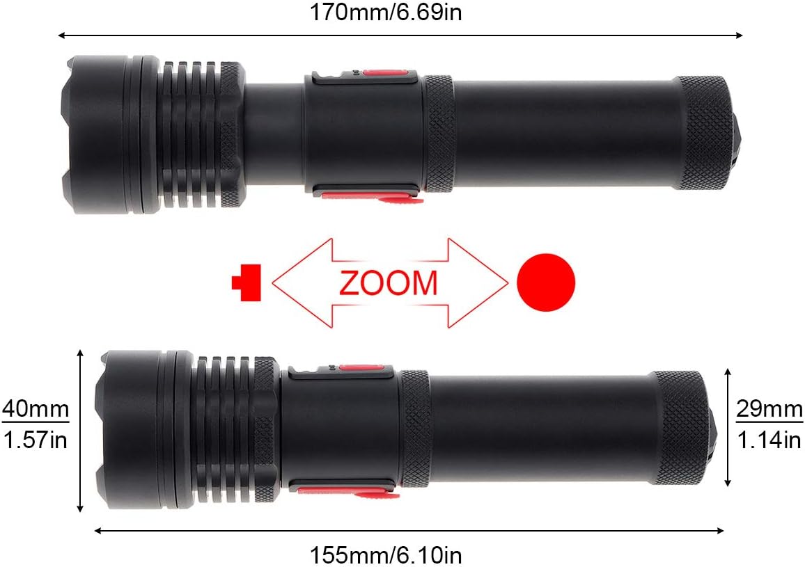 Chip LED di Ultima Generazione: La torcia utilizza un chip LED avanzato con una durata impressionante di 120.000 ore, in grado di generare una potenza ultra elevata fino a 5000 lumen, risultando circa 4 volte più luminosa rispetto alle normali torce T6.