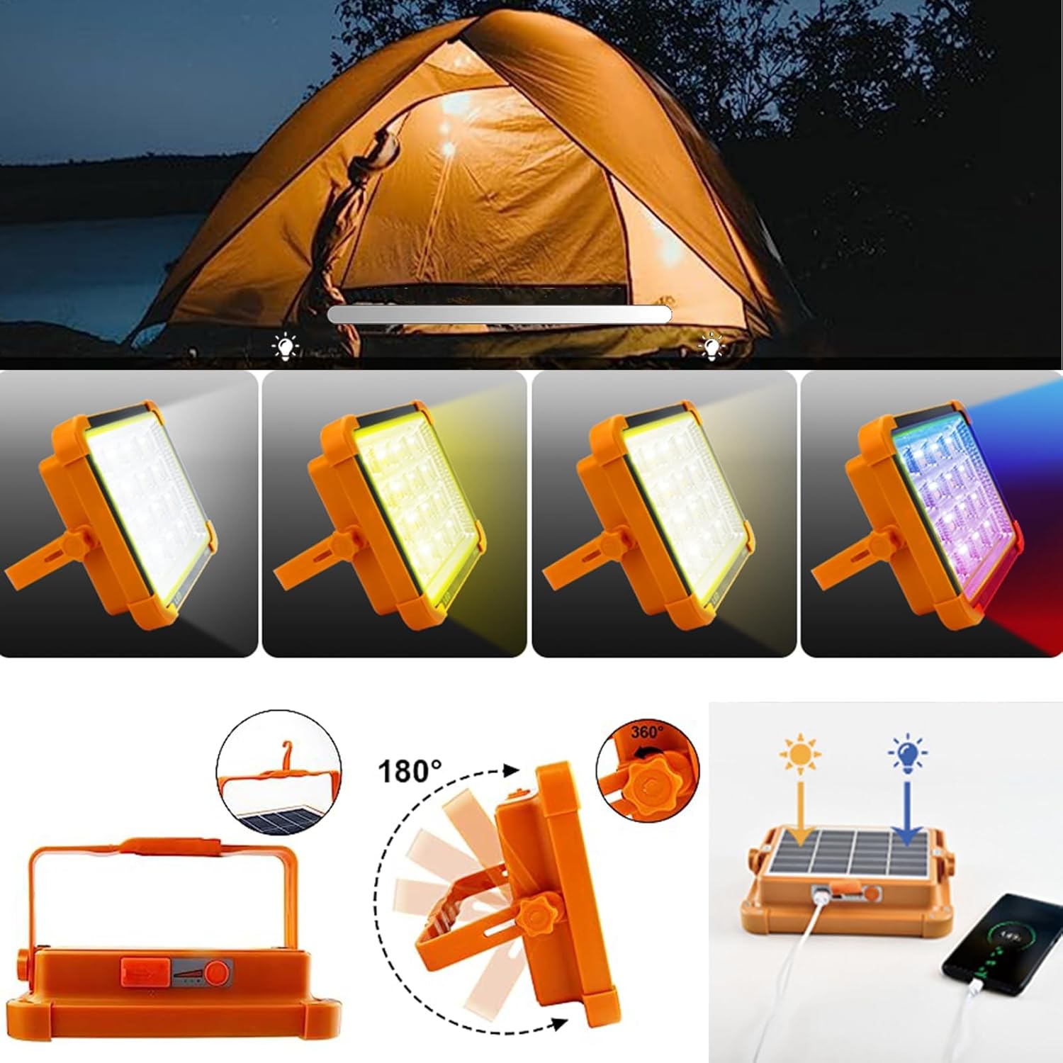 【Suitable for Outdoor or Indoor Lighting】Portable work lights are suitable for camping, fishing, BBQ, vehicle repair, workshops, garages, various work environments such as warehouses, gardens, hiking, outdoor lighting, shops and playgrounds and other outdoor activities. Internal or external.