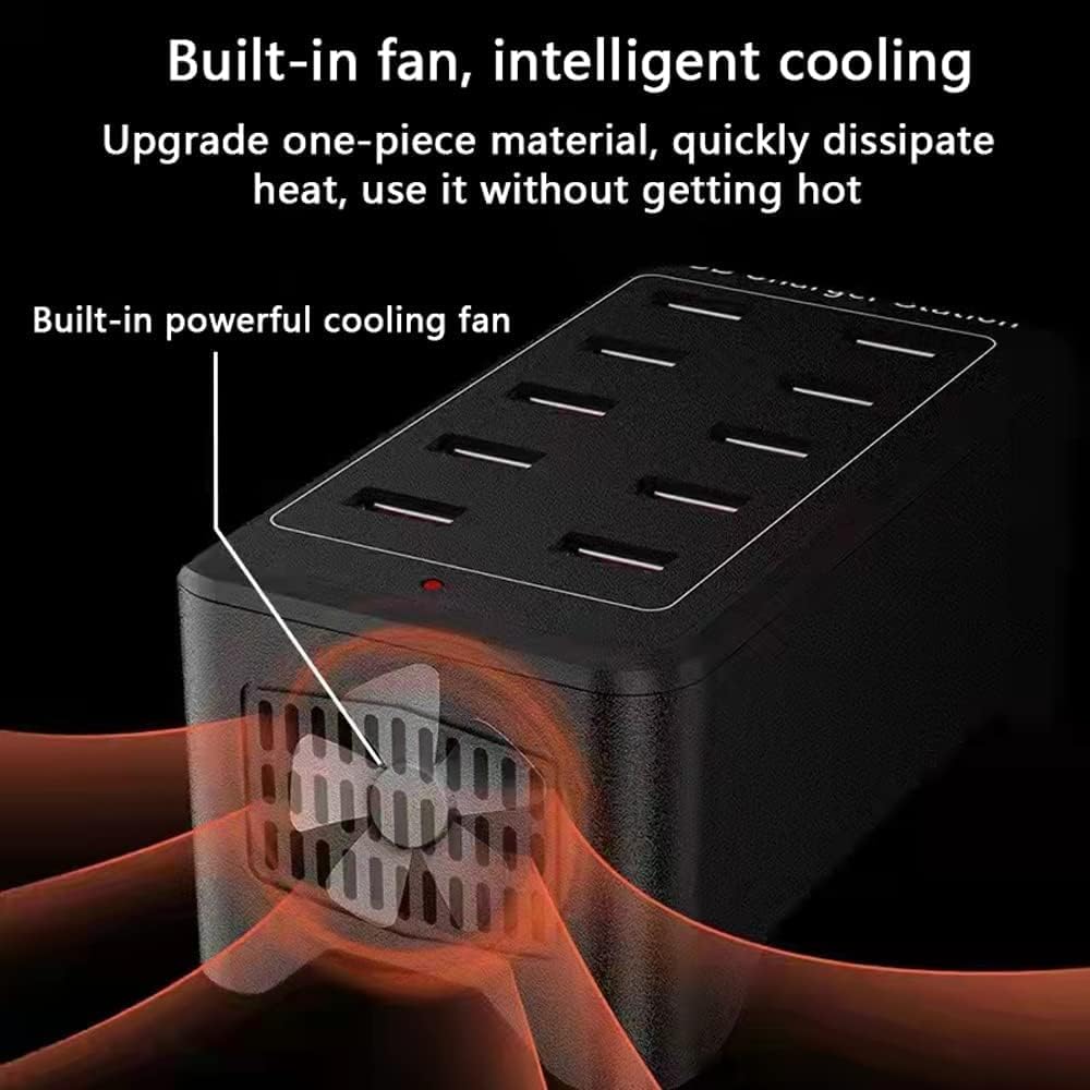 Questo adattatore USB multiporta è un caricabatterie portatile ad alte prestazioni che offre 10 porte USB-A, consentendo di caricare fino a 10 dispositivi contemporaneamente con una potenza totale di 50 W. Ogni porta supporta un'uscita fino a 2,4 A, garantendo una ricarica rapida e sicura grazie al rilevamento intelligente del fabbisogno di alimentazione di ciascun dispositivo collegato.