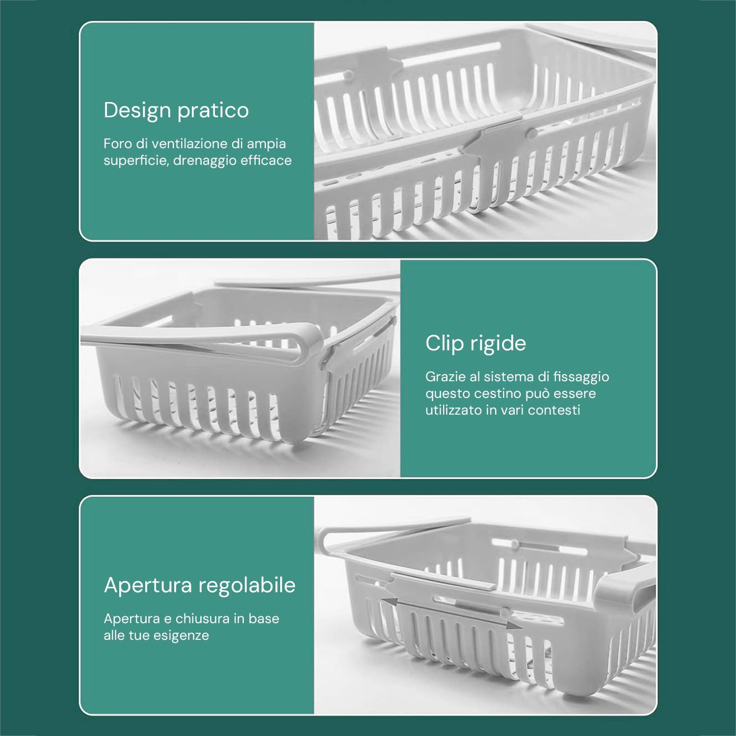 Facilità d'Uso: Il design estraibile permette di maneggiare e utilizzare facilmente il contenitore quotidianamente, senza sforzo. Pratico per l'uso in cucina o anche per trasportare cibo da un luogo all'altro.
