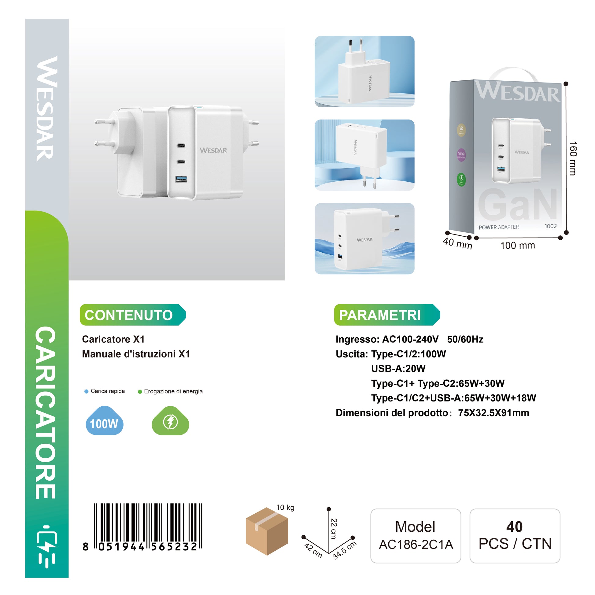 WESDAR AC186-2C1A Caricatore 100W