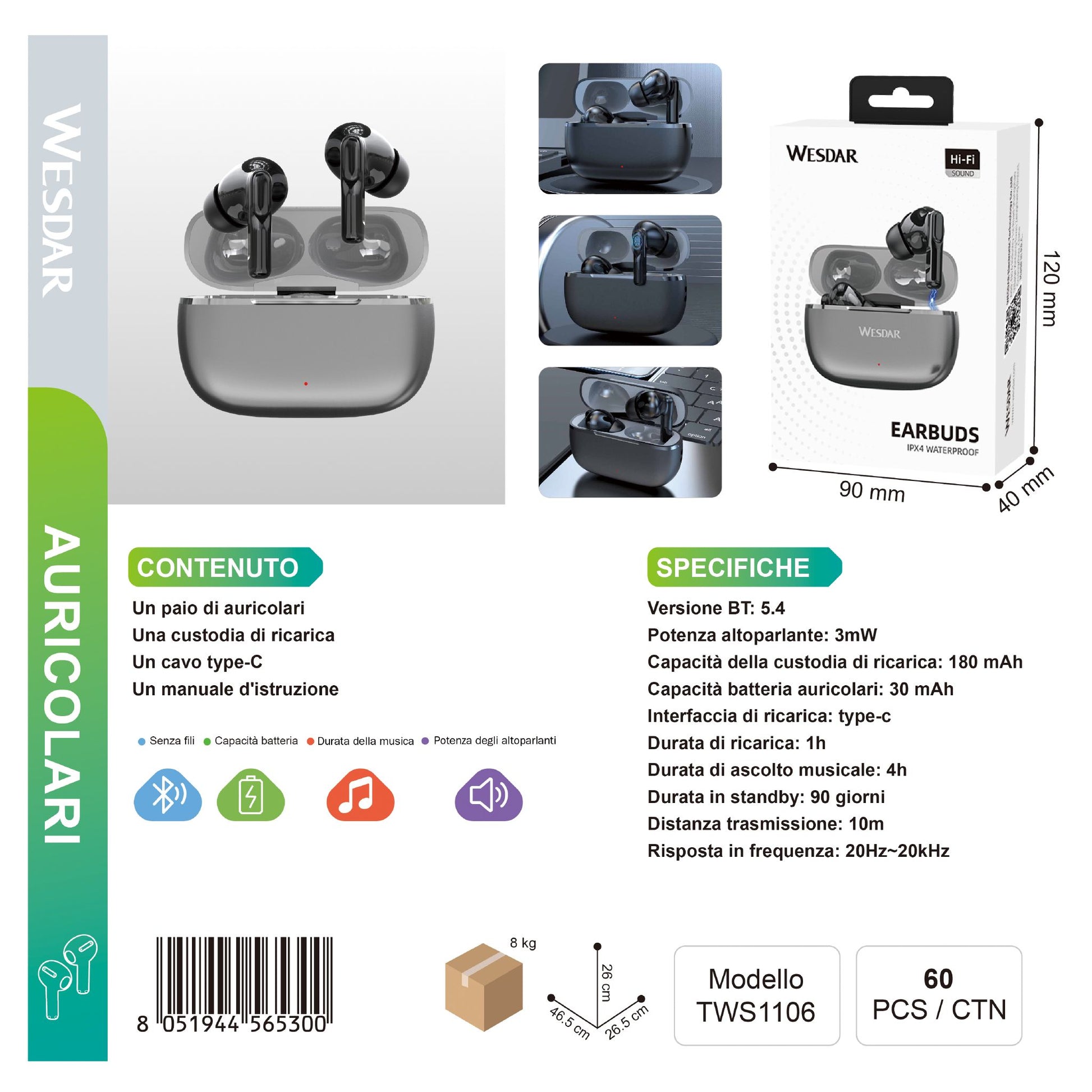 WESDAR TWS1106 Wireless Auricolari Earbuds