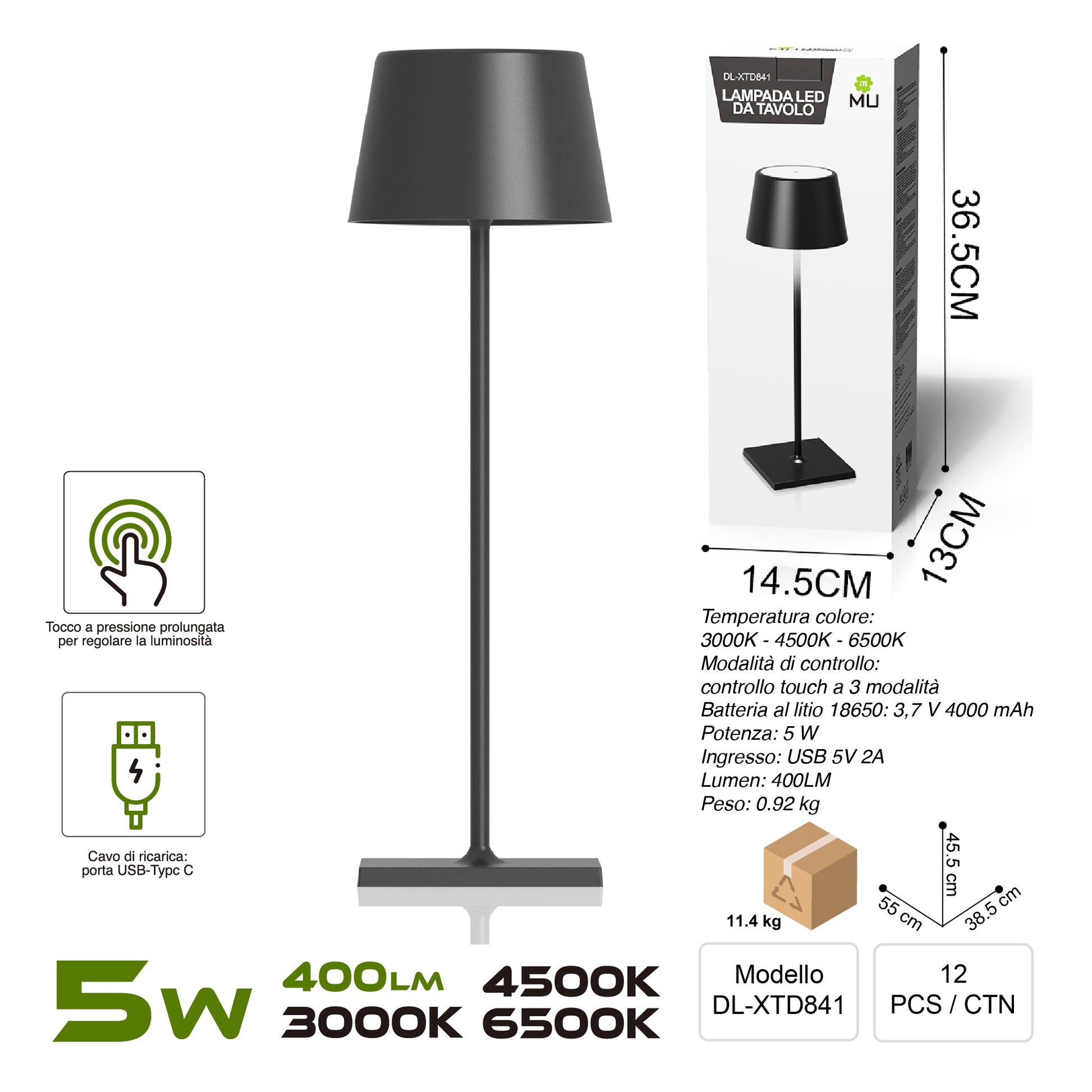 XTD841 Lampada da Tavolo, Ricaricabile e Dimmerabile