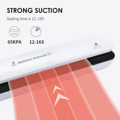 【Potente capacità di vuoto】Il nostro Macchina Sottovuoto utilizza una tecnologia nuova e migliorata per aumentare la potenza di aspirazione della pompa. Con una pressione negativa di 65 kpa, il processo di Macchina Sottovuoto per Alimenti della Macchina Sottovuoto può essere completato molto rapidamente entro 30 secondi. Così, la freschezza del cibo è massimizzata e la capacità di vuoto raggiunge oltre il 95%.
